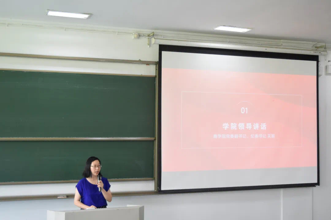 会上,商学院党委副书记、纪委书记吴琼进行动员讲话。她介绍了去年学院暑期实践的成果与经验以及学院2023年暑期社会实践立项情况和项目特点,鼓励同学们结合社会热点到基层开展暑期实践,提升综合素质和专业能力,同时做好总结宣传。