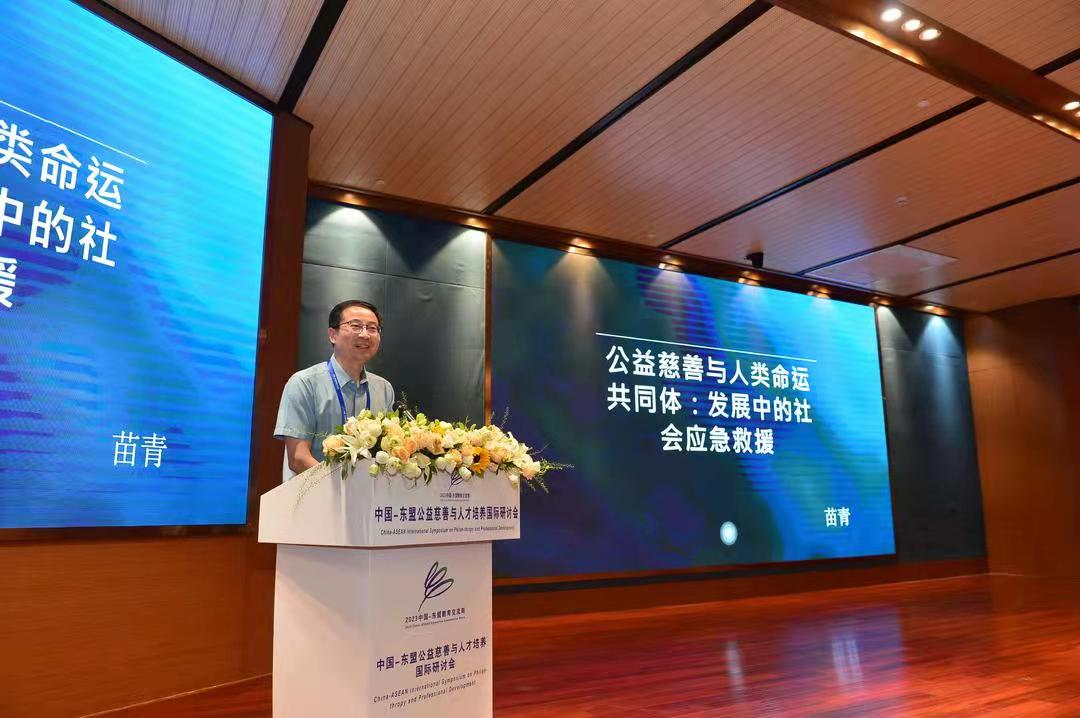 中国-东盟教育交流周执行秘书长刘宝利在致辞中指出,慈善事业是社会文明进步的重要标志,其对促进社会公平正义、推动共同富裕具有重要意义。当今,公益慈善事业发展迎来了新的历史机遇,但公益慈善组织在专业人才队伍建设方面还面临着系列问题,需要各方共同努力与协作,并持续深化研究和探索,以适应社会变革与公益慈善事业的不断发展。泰国高等教育科研与科技创新部秘书长达努·旦特缇指出,中泰两国关系非常友好,希望两国各高校师生前往泰国切身感受泰国文化,与泰国、与东盟国家的教育家共同努力,为公益慈善事业与一带一路、人类命运共同体的关系和发展提供新思路。