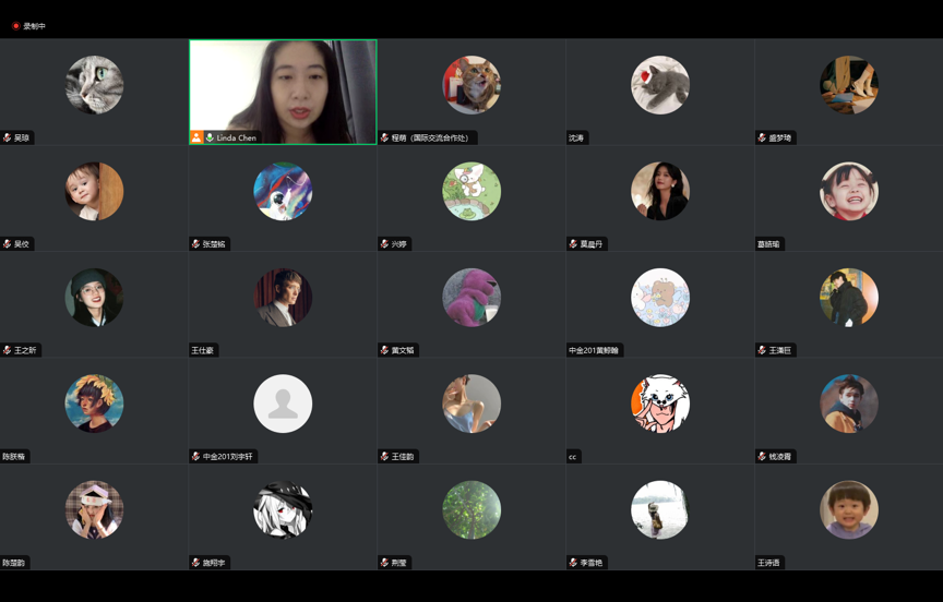 各位老师对克服时差线上参会的学生代表表示感谢。吴琼老师向在场学生通报了2019级中美班毕业生的海外深造情况,希望2020级中美班同学认真完成课业,重视就业规划,提早制定自己的海外深造计划,利用宝贵的赴美机会全方位提升个人能力。