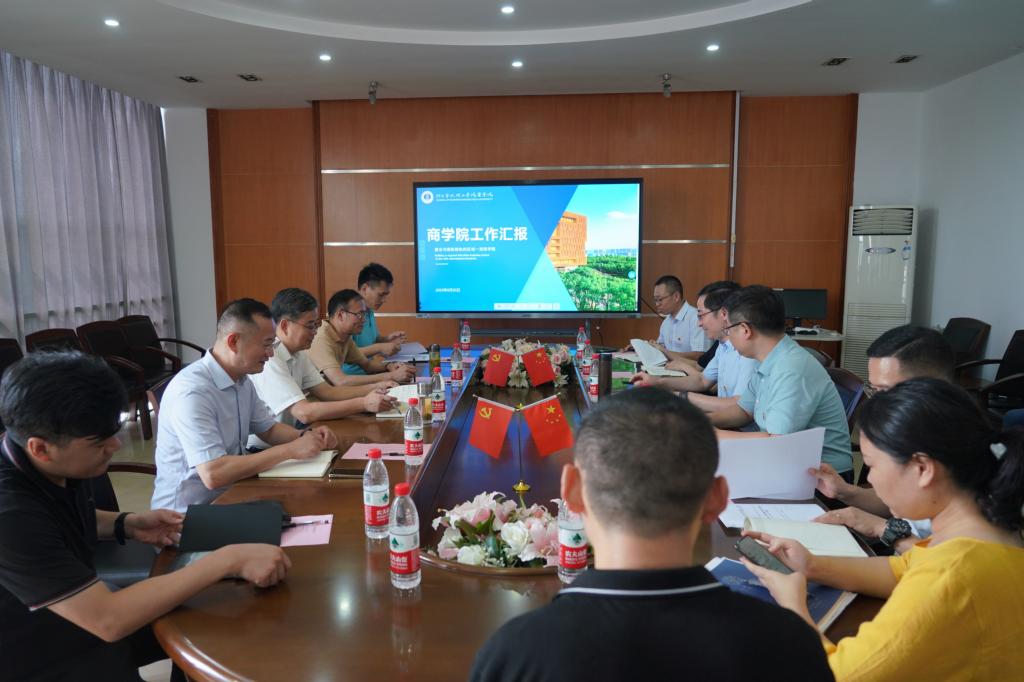 学院院长苗青在调研座谈会上介绍了商学院的历史沿革、组织机构和师生队伍结构,重点汇报了近年来学院在党的建设、人才培养、队伍建设、科学研究、硕士点申报建设、国际化、继续教育等方面的取得的成绩,分析了学院发展当前面临的若干问题。