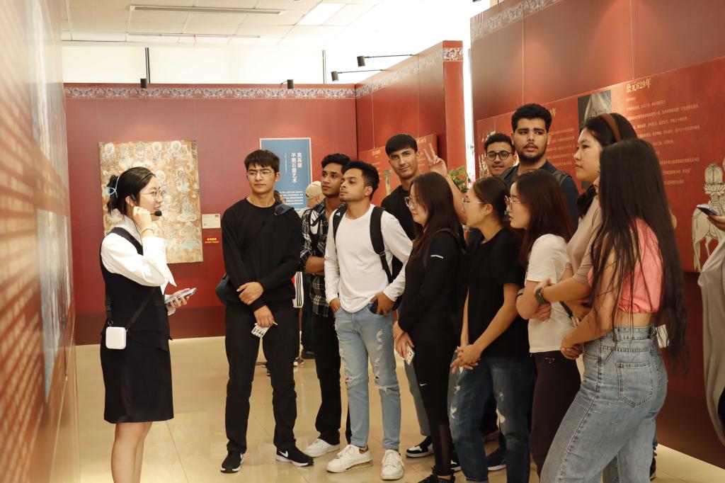 国际学生参观敦煌艺术精品展。通讯员供图