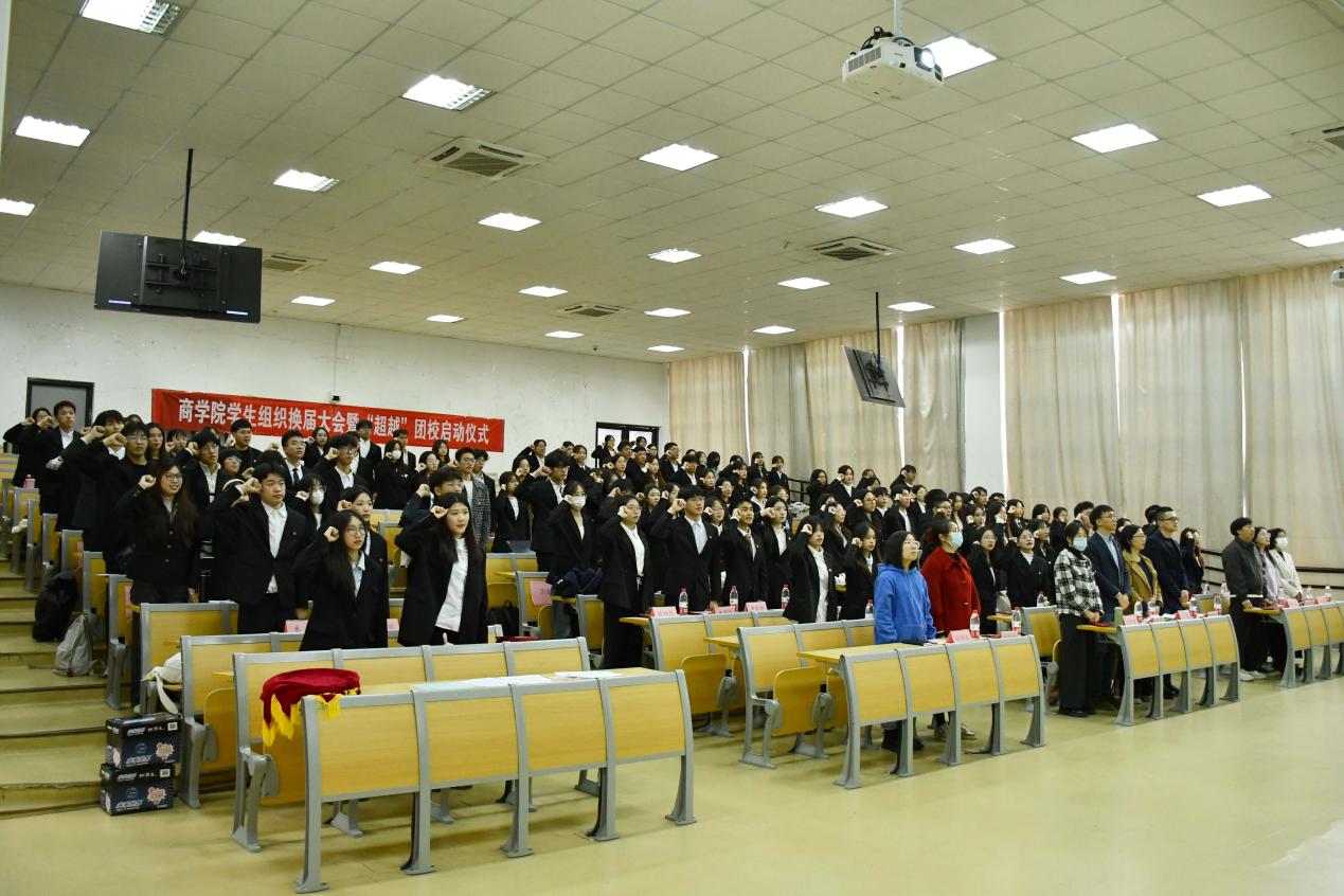 11月14日下午,商学院于SB104教室举行学生组织换届大会暨“超越”团校启动仪式。学院党委副书记、纪委书记吴琼,思政副主管潘剑邦,团委书记张楚铭,学工办全体老师及全体学生组织干部参加了此次活动,活动由团委副书记(学生)苏雪柯主持。