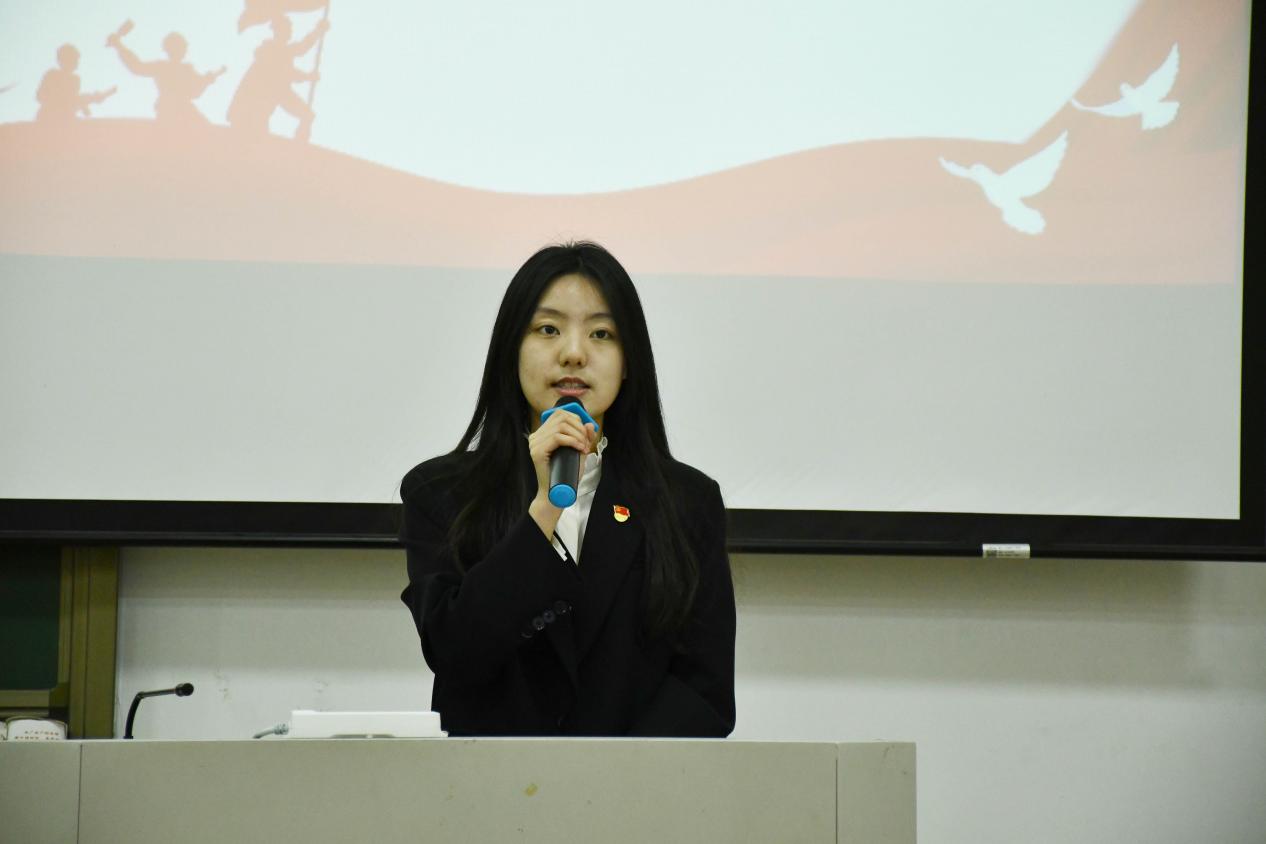 商学院新一届学生干部——学生会主席团成员詹子怡进行发言,她代表学生干部们承诺,会以良好的工作状态,以饱满的热情去迎接未来的学生工作,把握好工作、学习、生活三者间的平衡,用心工作,创造商院学生工作新的辉煌。