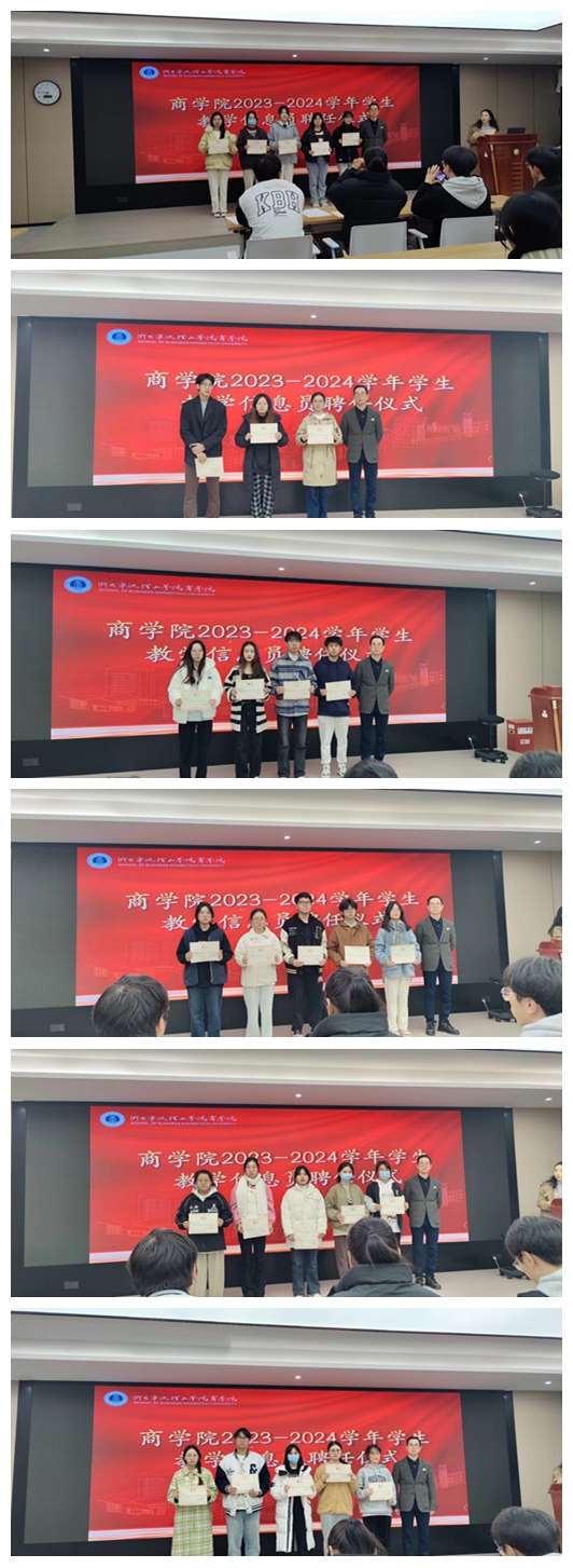 根据《浙大宁波理工学院商学院学生教学信息员管理办法(试行)》(宁波理工商〔2023〕21号)文件精神,商学院成立了学生教学信息员中心,负责学生教学信息员日常管理和教育培养工作。在学生个人推荐选拔基础上,经审核决定聘任冯欣亿等79名同学为商学院2023-2024学年学生教学信息员。
