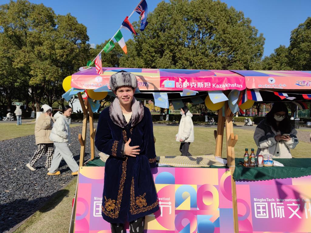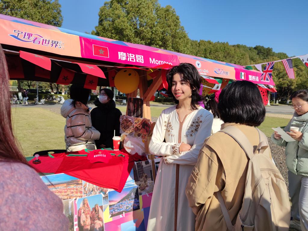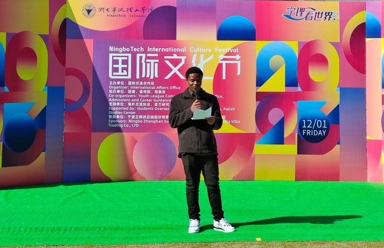 2023年12月1日,浙大宁波理工学院第三届“宁理看世界”国际文化节在图书馆东侧广场盛大开幕,商学院首届25名国际学生参与其中,展示自己国家的风土人情、美物美食。