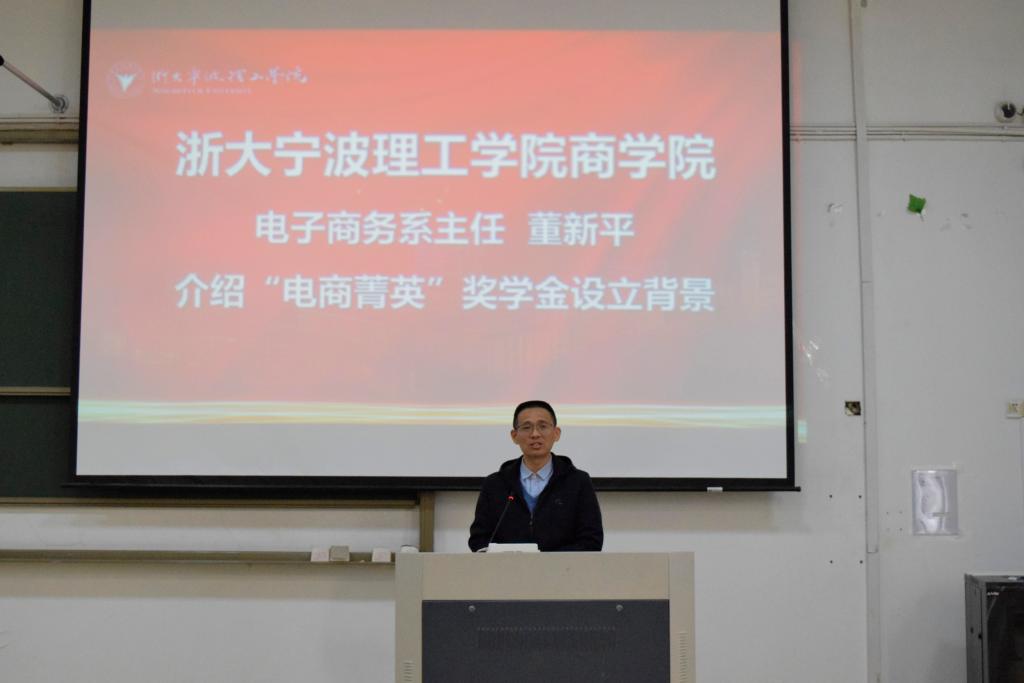 商学院电子商务系主任董新平介绍了“电商菁英”奖学金的设立背景。他表示,该奖学金旨在激发学生的学习热情,提高学生的综合素质,为我国电子商务事业的发展培养更多优秀人才。