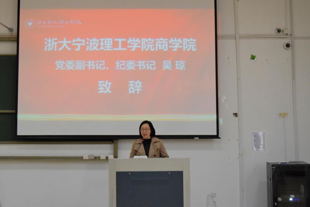 活动开始,商学院党委副书记、纪委书记吴琼向与会人员介绍了电子商务专业近年来的办学成果,肯定了老师、学生和校友为此付出的努力。同时,她向支持母校教育事业发展的广大校友表示由衷的敬意,向电子商务俱乐部的慷慨资助表示诚挚的谢意。