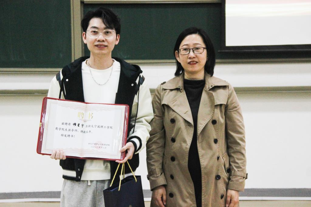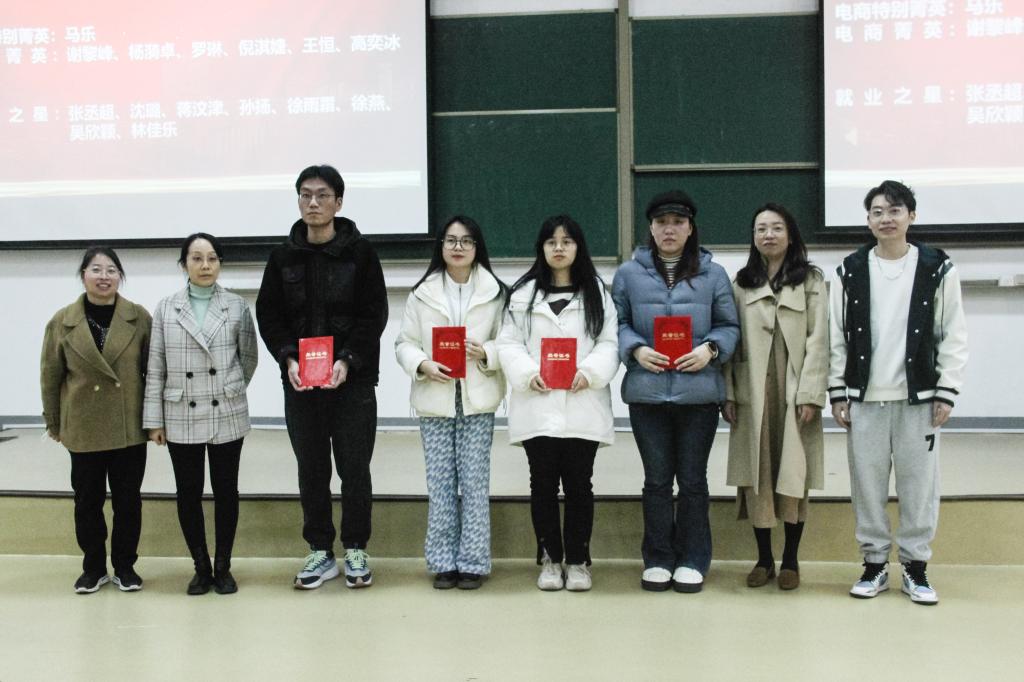 随后,电子商务专业教师和校友穆星宇共同为“电商菁英”奖学金获奖者颁奖了荣誉证书。