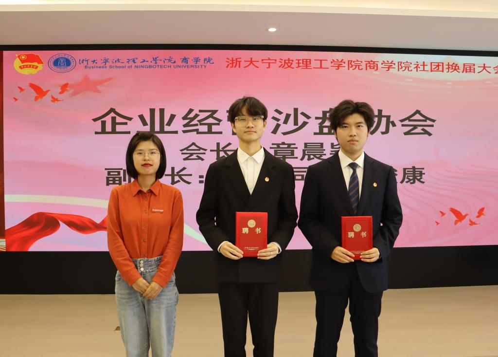 随后进行聘书颁发仪式。学院团委书记张楚铭老师、学院学工办吴佼老师为新一届社团会长和副会长颁发聘书。