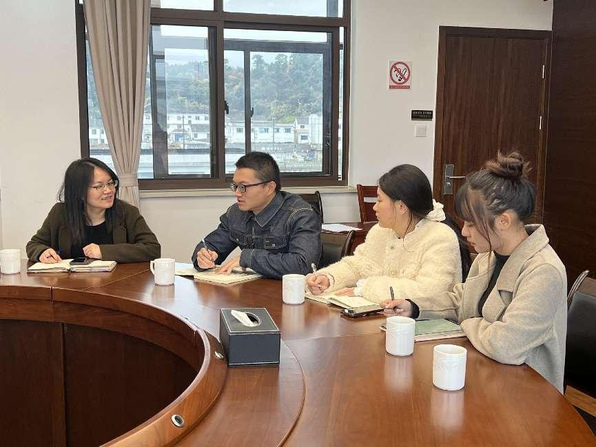 东钱湖镇团委书记李玲玲首先对商学院团委的到来表示欢迎。在李书记介绍中,商学院团委一行参观了东钱湖镇团委的办公环境,详细了解东钱湖镇团委的工作流程和业务范围。接着,双方就大学生如何更好地融入城乡社区开展社会实践、团支部建设等工作进行了深入交流。李玲玲书记介绍了东钱湖镇团委的基本情况,分享他们在团建工作中的做法以及今年东钱湖镇团委在浙江省志愿服务项目大赛中的经验。在交流中李书记对商学院团委的工作给予高度评价。