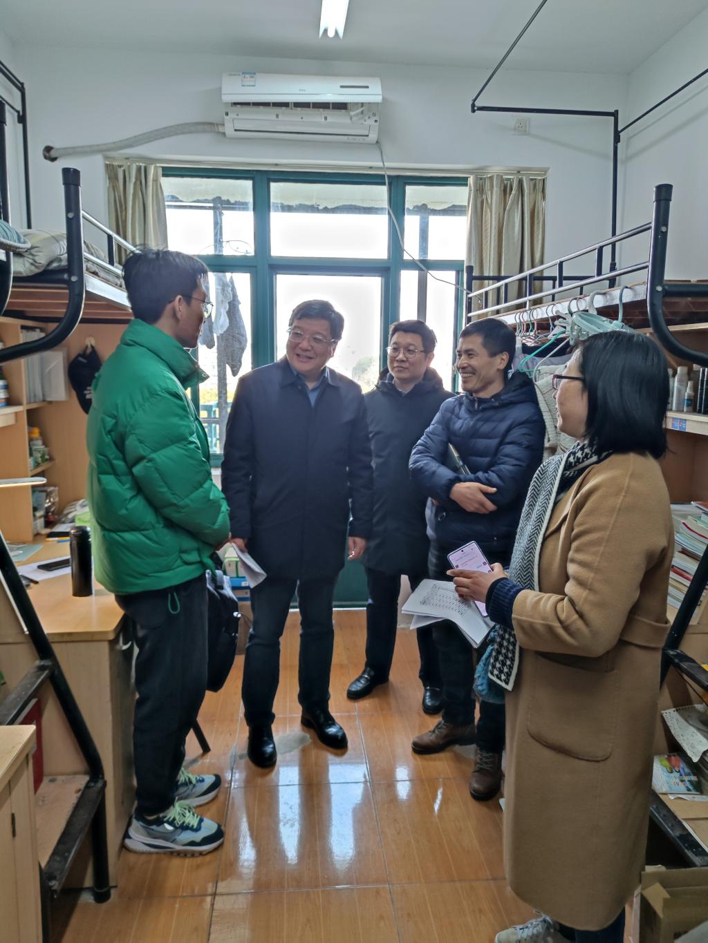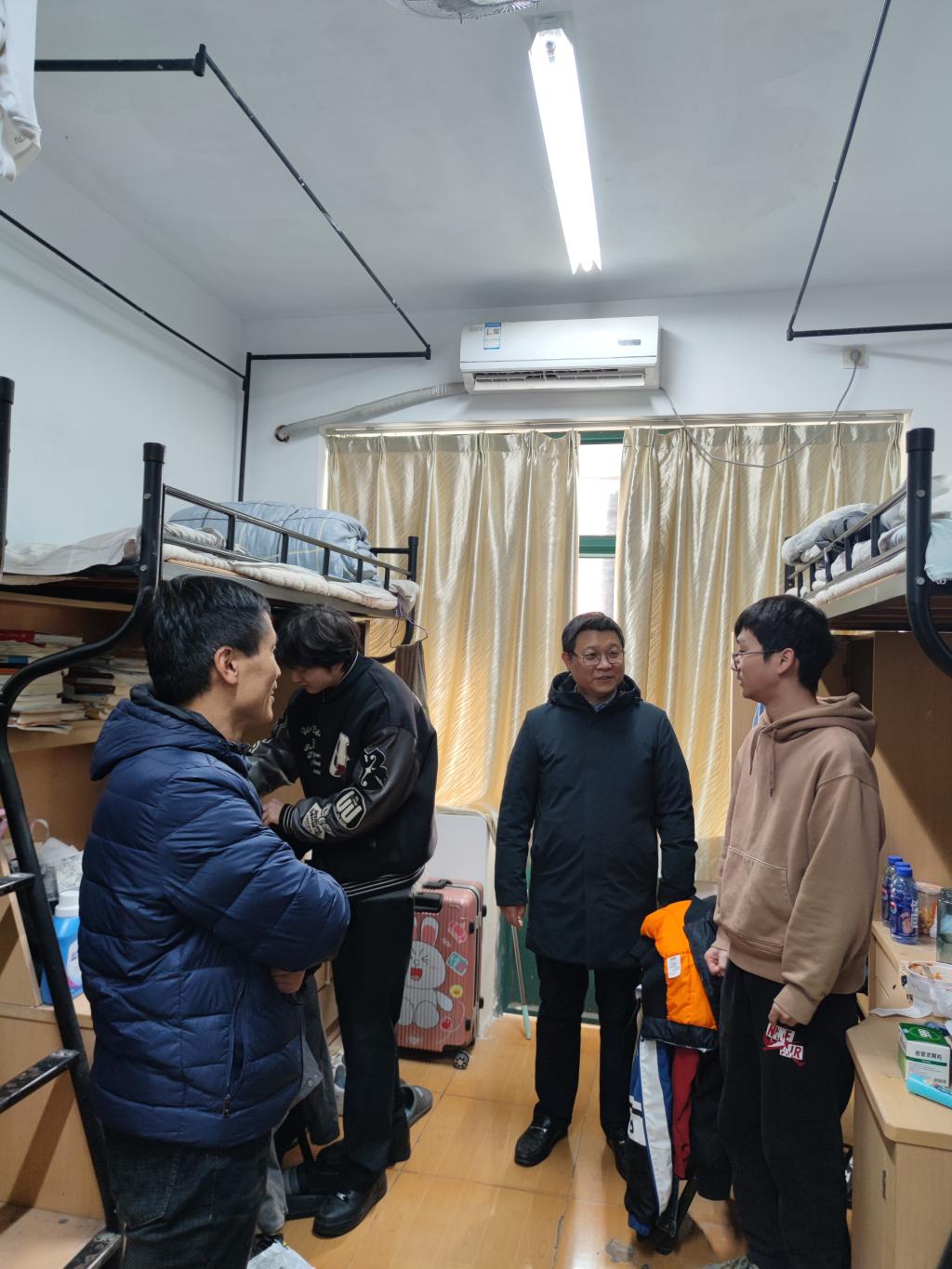 近日,在学校党委副书记黄光杰的带领下,商学院班子成员、班导师和全体辅导员深入学生寝室,了解同学们的生活和学习状况,为大家期末的生活学习提供帮助和支持。此次走访活动充分体现了学校对同学们的关爱和重视,为同学们的成长和发展提供了有力保障。