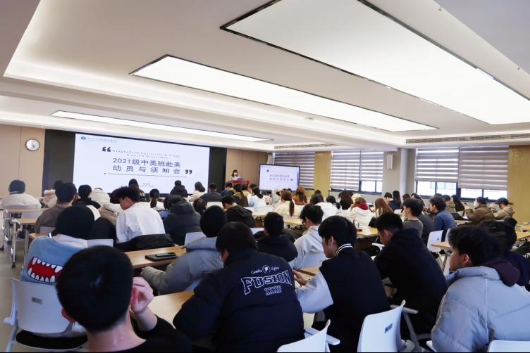 1月4日下午,2021级中美班赴美动员与须知会在SC412顺利举行。商学院党委书记、副院长马翔,学校国际合作与交流处副处长程萌,商学院党委副书记、纪委书记吴琼,商学院院长助理李雪艳出席会议,商学院国际交流中心励呈仪、中美班辅导员吴佼及班导师刘美、林雅琴和中美班2021级学生参加会议。