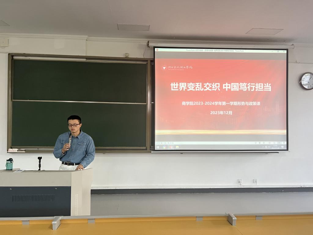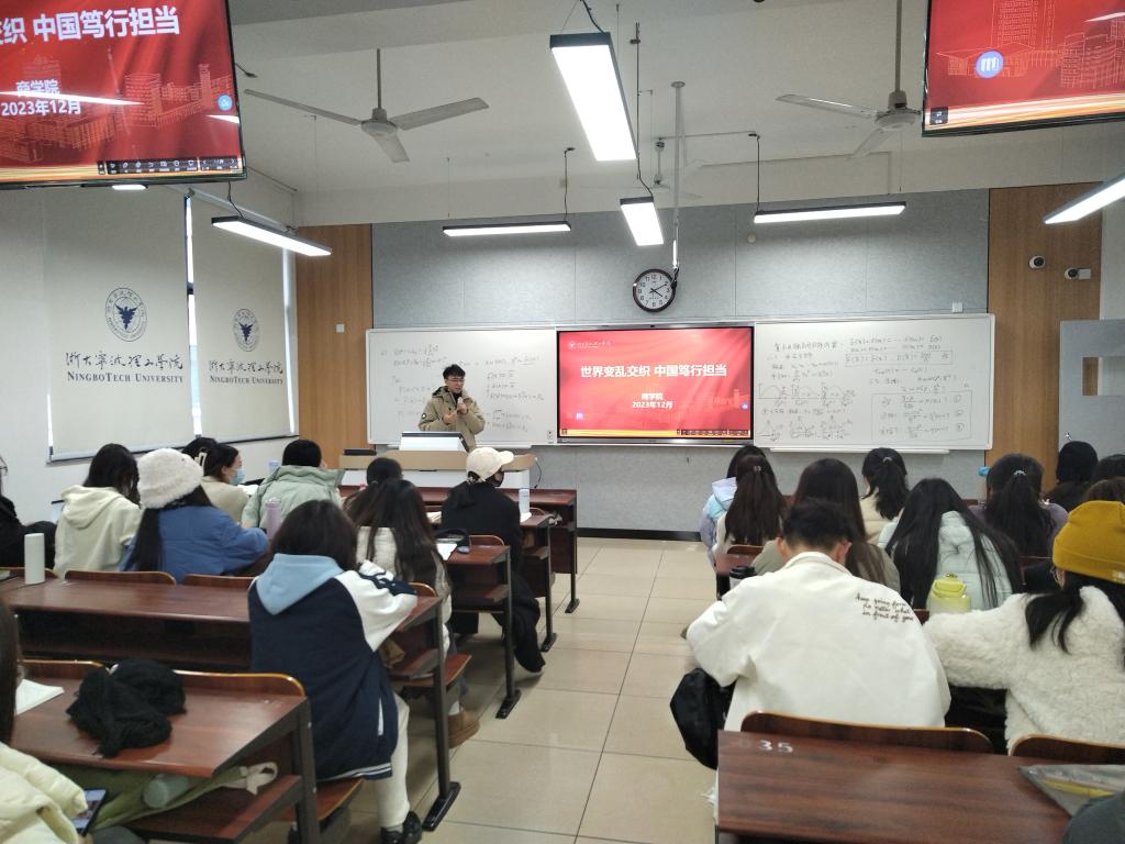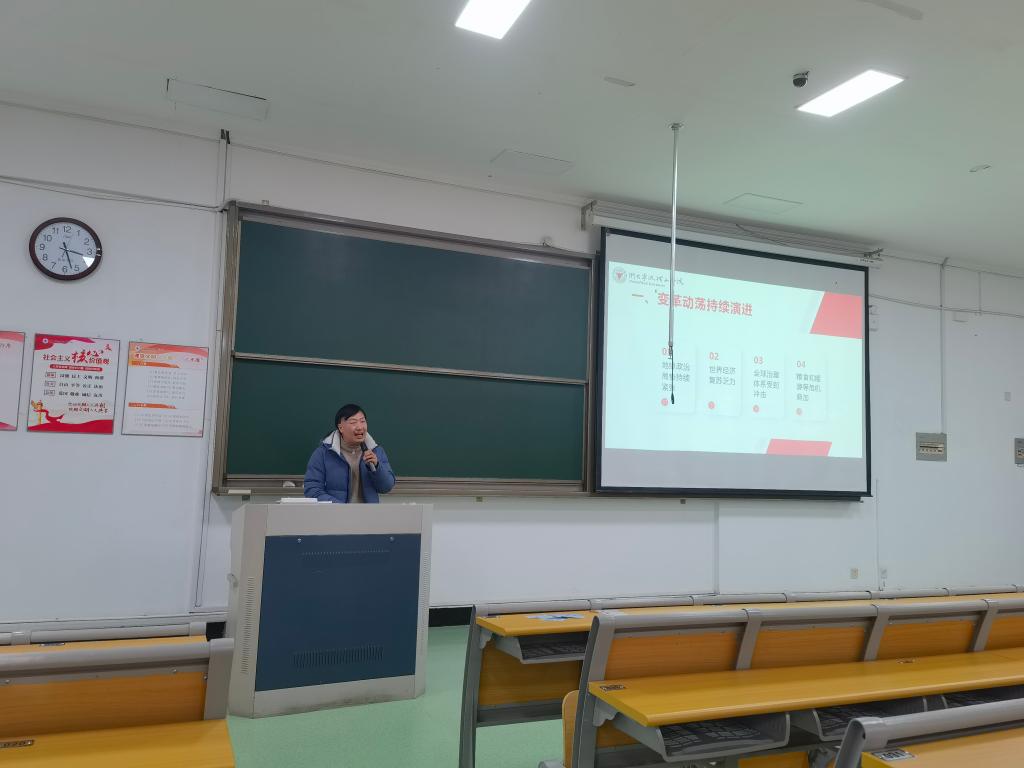 12月,我院面向2022级全体学生开展了“形势与政策二”专题课程,本期专题课主题为“世界变化交织,中国笃行担当”,课程由商学院全体辅导员讲授。