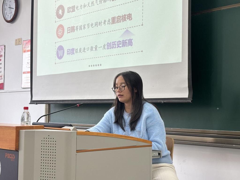 各位辅导员从变革动荡持续演进、大国关系深刻调整、中国智慧彰显担当等三个方面,以宏观的理论视角审视当前的国际局势,指出当今世界正处于百年未有之大变局,人类社会面临前所未有的挑战,世界经济复苏乏力、地缘政治局势持续紧张、全球治理体系受到冲击、粮食和能源等危机叠加。老师们提出面对挑战,同学们一定要深刻认识到新时代的中国在世界变化发展中所起到的重要作用,中国着眼于全人类共同利益,一直致力于维护大国关系,积极探索中美、中俄、中欧之间的关系,坚持互利共赢。新时代中国以因势而谋、迎难而上的进取精神,胸怀天下、引领时代的大国担当,持续为变乱交织的世界提供破解难题的良方、凝聚团结合作的力量。