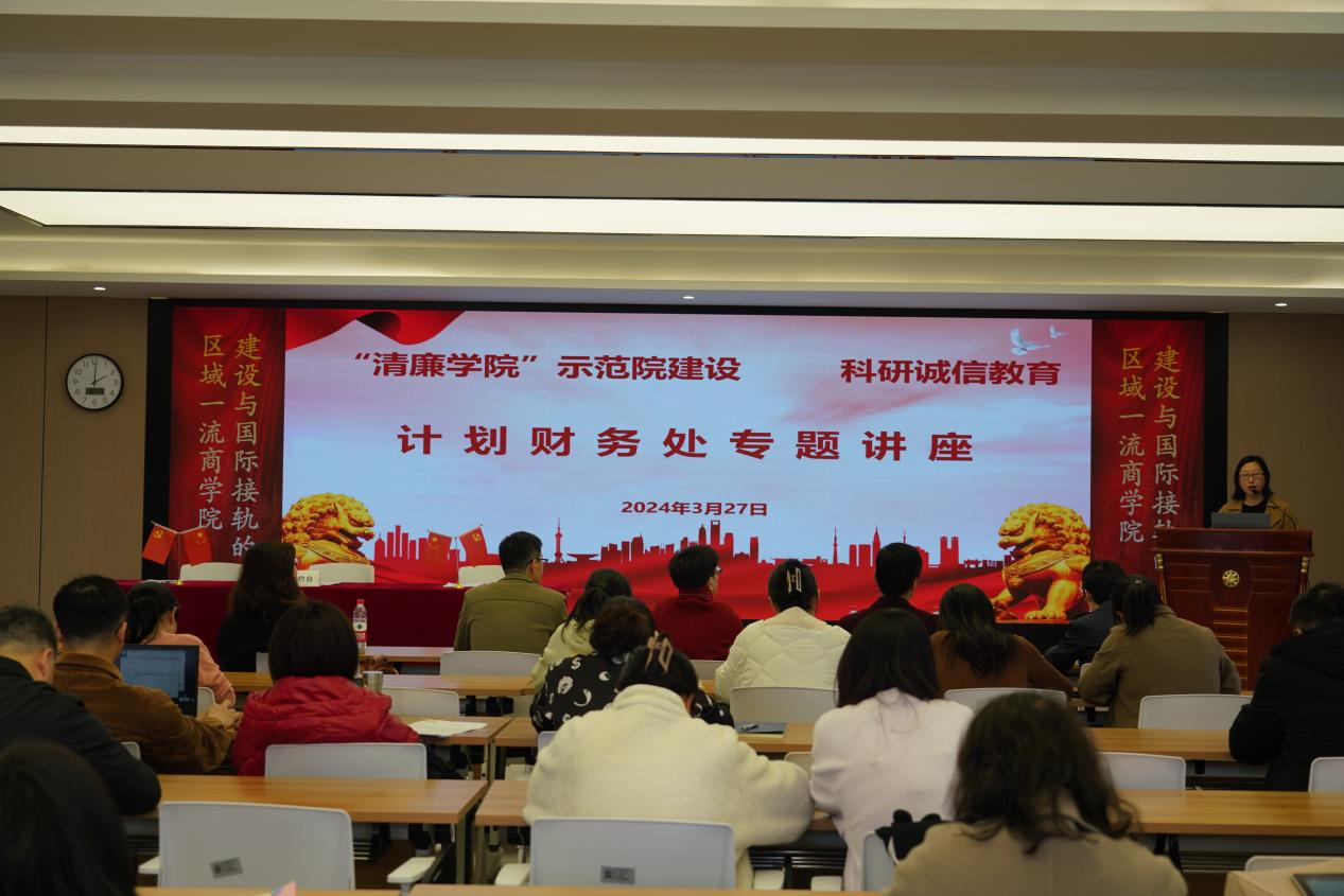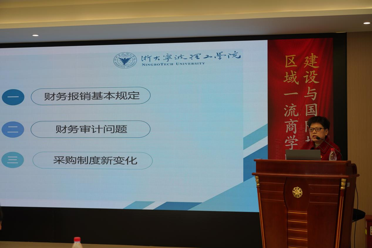 最后,计划财务处党支部书记王华美为全体教职工带来了专题讲座《财务报销基本规定、财务审计问题及采购制度新变化》,该讲座深入浅出地讲解了学校的财务报销制度,审计常见问题和目前实行的采购制度的变化点。此次讲座是商学院开展“清廉学院”示范院建设的一项活动,旨在推进科研诚信,营造风清气正的商院氛围。