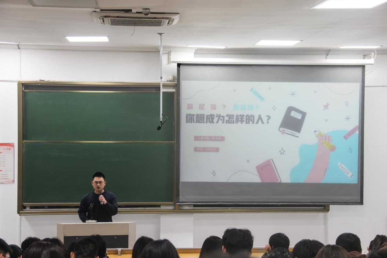 吴启富老师从竺可桢先生的两问“你们到大学来做什么?将来毕业后做什么样的人?”引导同学们思考应如何定位自我、培养自我,达到超越自我的目标。