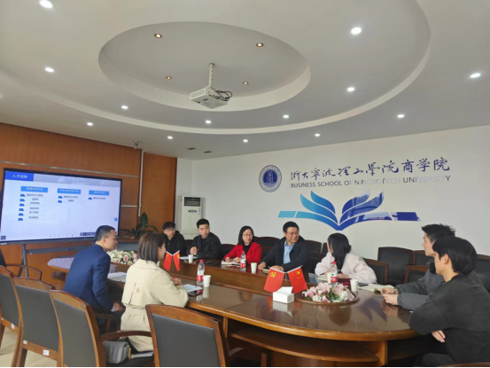 3月15日,中信建设证券股份有限公司宁波分公司总经理携招聘总监来我院交流洽谈,商学院院党委书记、副院长马翔,学院党委副书记、纪委书记吴琼,市金融研究院朱兴婷博士和学工办就业辅导员王丽丽共同接待。