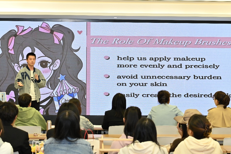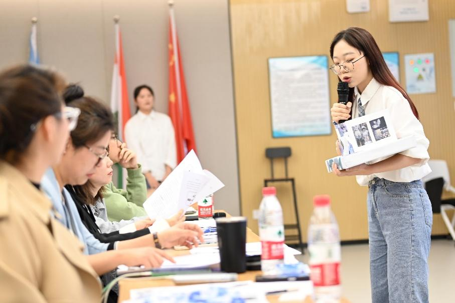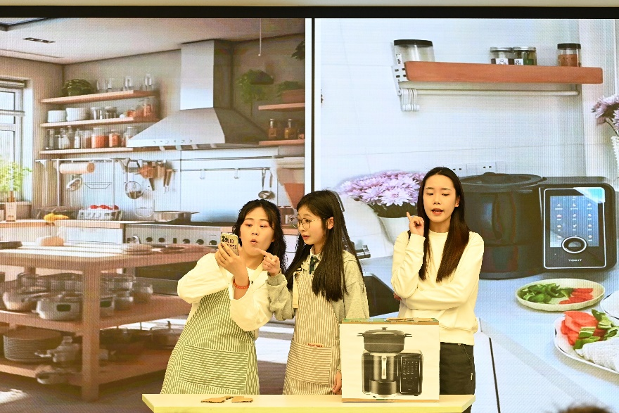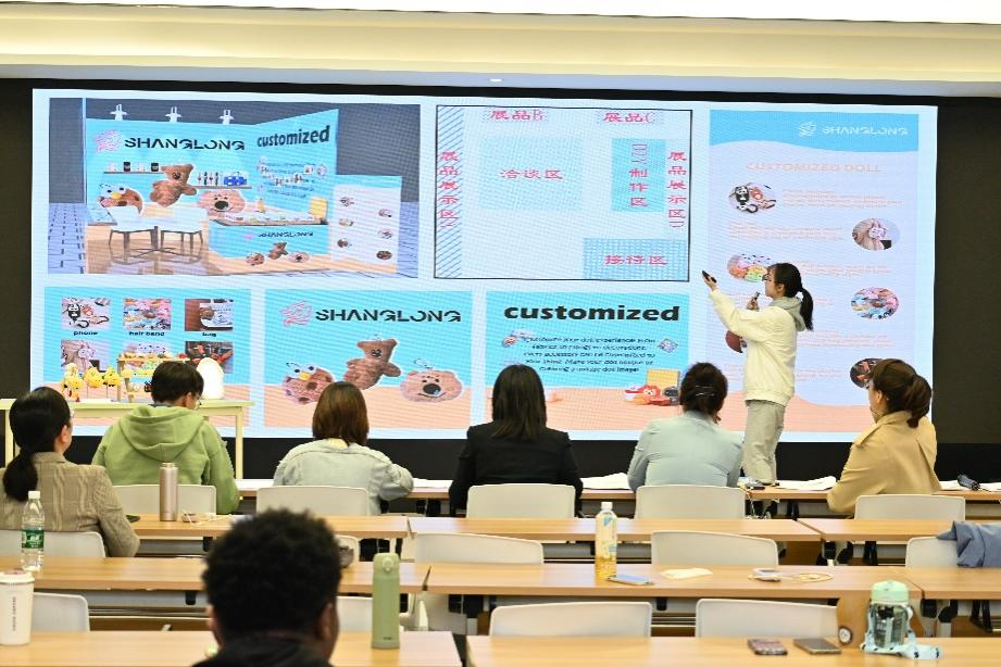 校内选拔赛流程包含外贸参展商业计划书评审、新产品发布会展演、展位海报设计与商品陈列方案模拟展示、评委点评提问四个环节。本次参赛共十一支团队,成员以国际经济与贸易专业的学生为主,也有外语学院的同学们实力加盟。