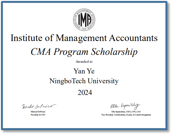 据悉,CMA证书作为享誉世界的国际管理会计通用证书,全球180多个国家认可,有国际miniMBA之称。IMA(美国管理会计师协会)自2012年起在中国设立CMA奖学金项目,是IMA在全球开展的支持高校管理会计教育和普及工作的公益项目,目前与国内多个排名前列的综合类院校和财经类院校开展CMA项目合作。