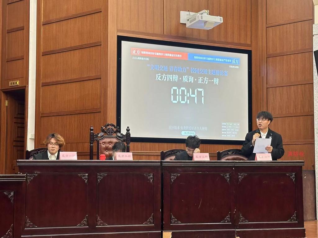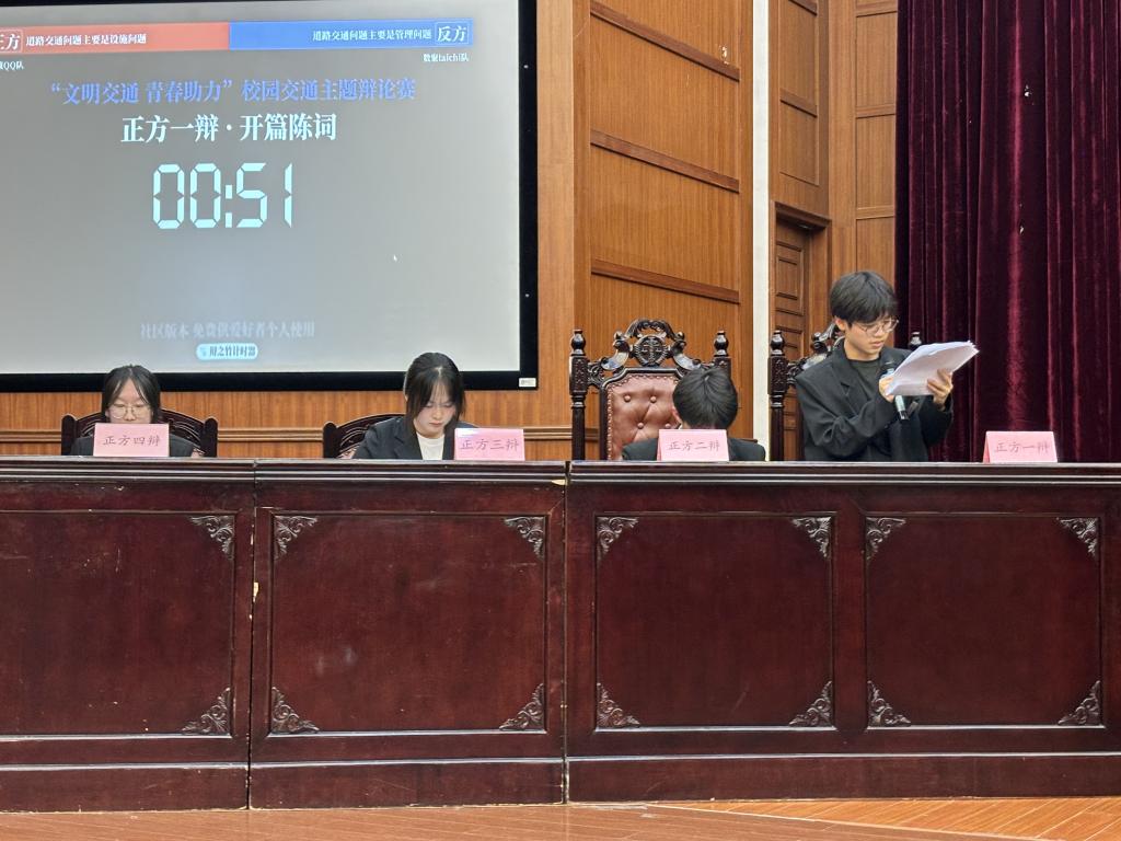 辩论赛分别以“保障校园良好交通秩序主题措施是宣传教育还是严管重罚”“道路交通问题主要是设施问题还是管理问题”为辩题,正反双方围绕该主题展开了激烈交锋。