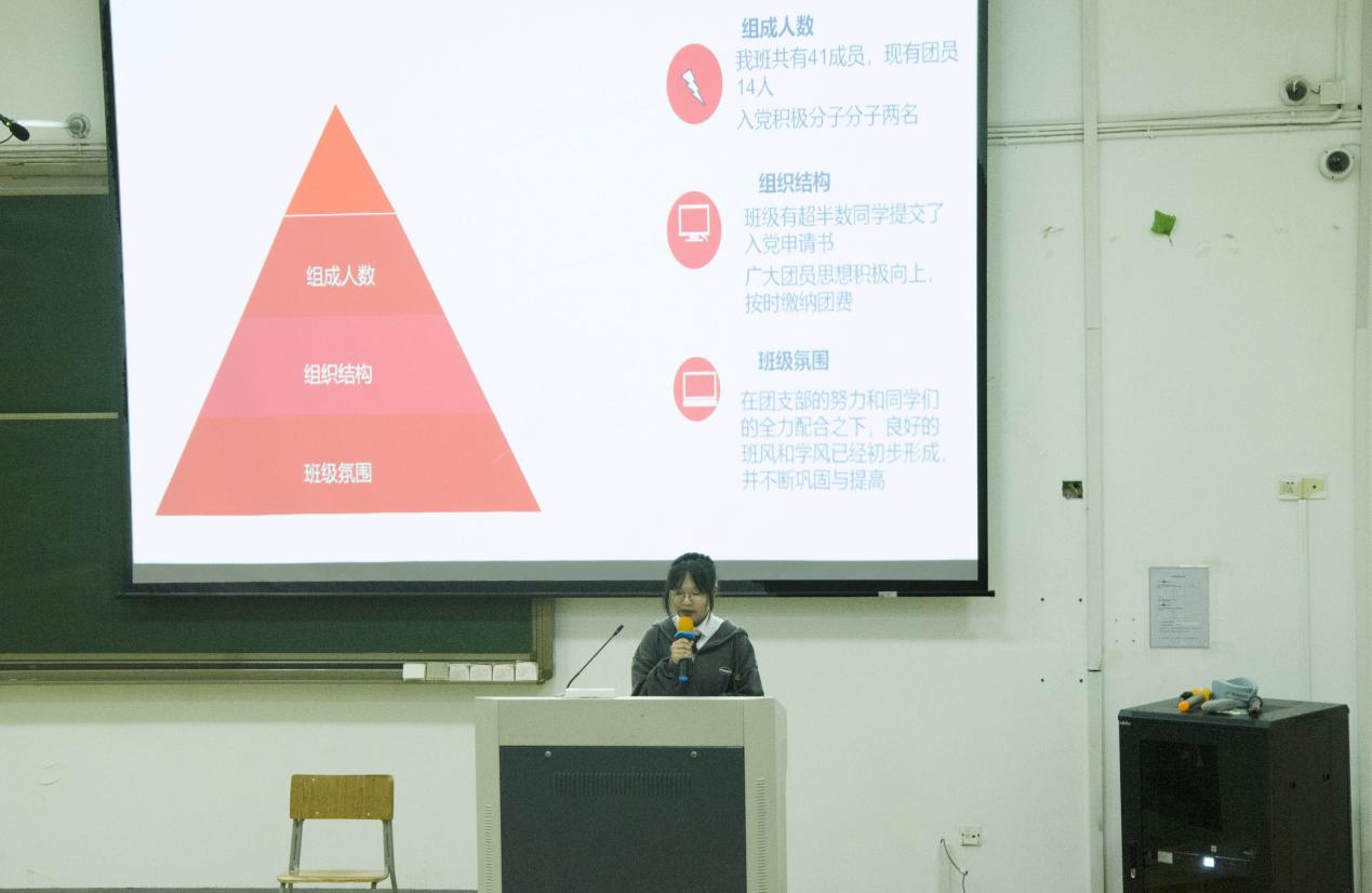 财务管理211团支部对本班的团日活动工作进行了详细的汇报,从前期准备到活动开展、场外建设以及会后总结四方面,展现了班级同学融洽和谐,积极向上的精神风貌。
