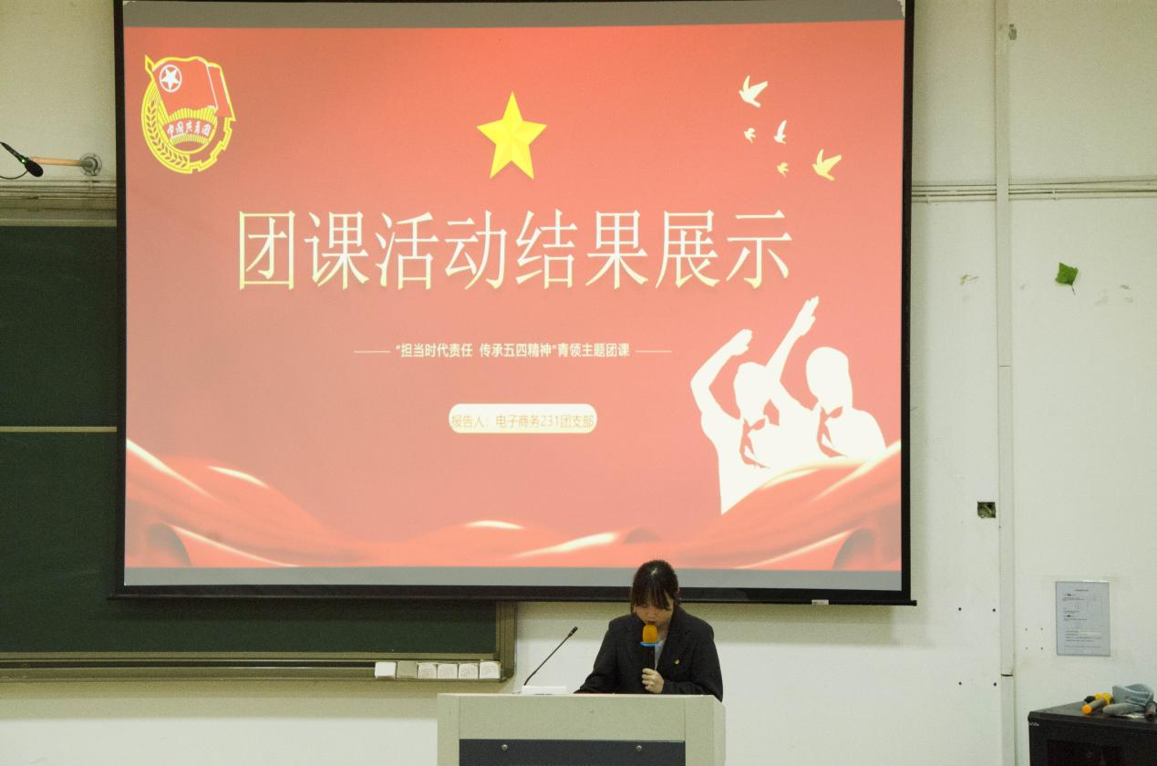 电子商务231团支部开展了"担当时代责任,传承五四精神"的主题团课,不仅在校内学习团课理论、观看红色影片,还到校外进行了遗址探访活动和红色剧本杀体验,将五四精神与当前班级实际相结合,激发了支部成员对事业的热爱和对未来的憧憬,他们将带着先驱们的精神财富,为实现中华民族伟大复兴贡献青春力量。