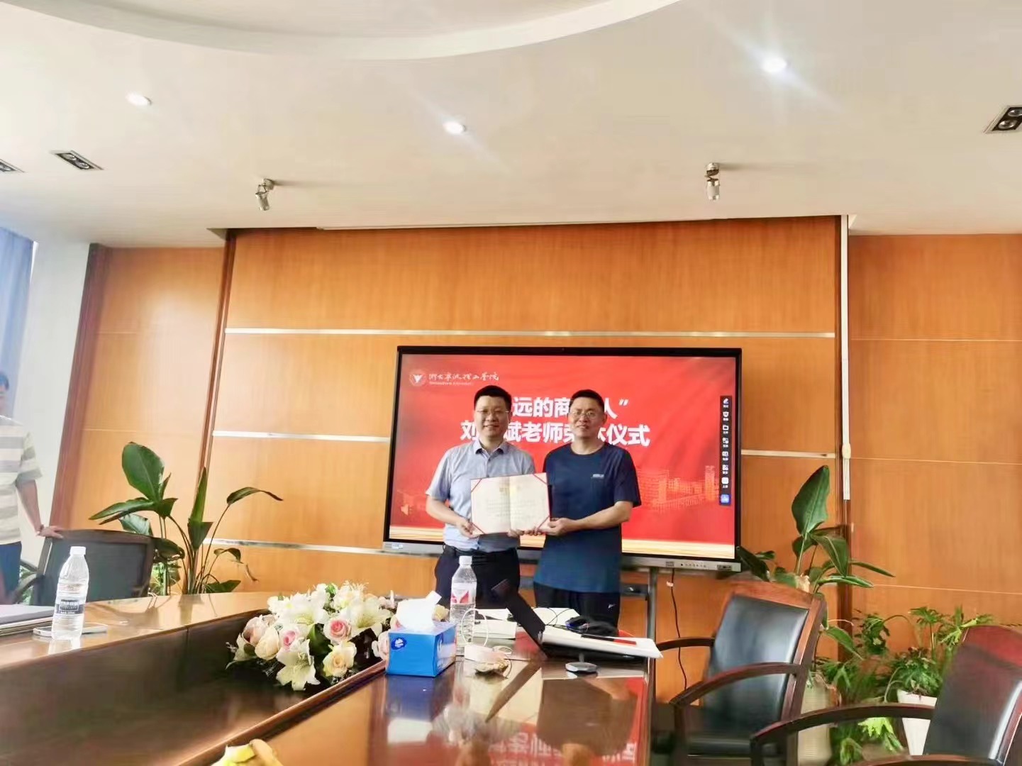 学院为刘吉斌老师颁发了荣誉证书,赠送了鲜花和纪念品,并献上了对刘老师荣休后的美好祝愿。