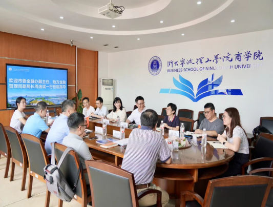 6月18日,宁波市委金融办副主任、地方金融管理局副局长周逸斌、研究室主任陈嘉毅、保险产业促进发展科科长俞腾越一行,赴商学院进行调研交流。商学院党委书记、宁波市金融研究院院长马翔教授、执行院长滕帆副教授、副院长吴燕博士、金融系朱兴婷副教授以及多位金融学专业教师参加了交流活动,双方就当前金融发展形势及建设金融强市背景下的战略合作方向展开了深入探讨。