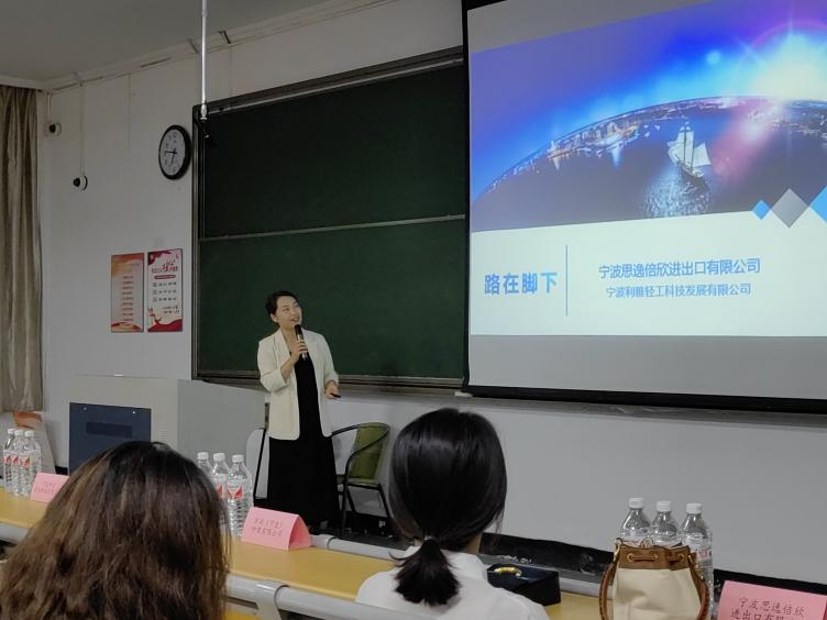 随后是企业宣介环节。宁波思逸倍欣进出口有限公司人事经理孙琴向学生们详细讲解企业的岗位需求及用人标准。学生们深刻感受到外贸行业的巨大潜力和无限机遇,企业代表还为他们提供了丰富的就业信息和职业发展建议,助力学子规划未来职业道路。