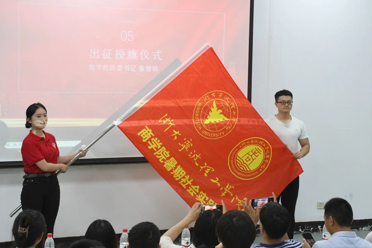 在系列培训环节之后,由代表为各个实践团队分别授予锦旗。每一面锦旗都代表着学院对团队的信任和期待,也寄托着学院对同学们的美好祝愿。