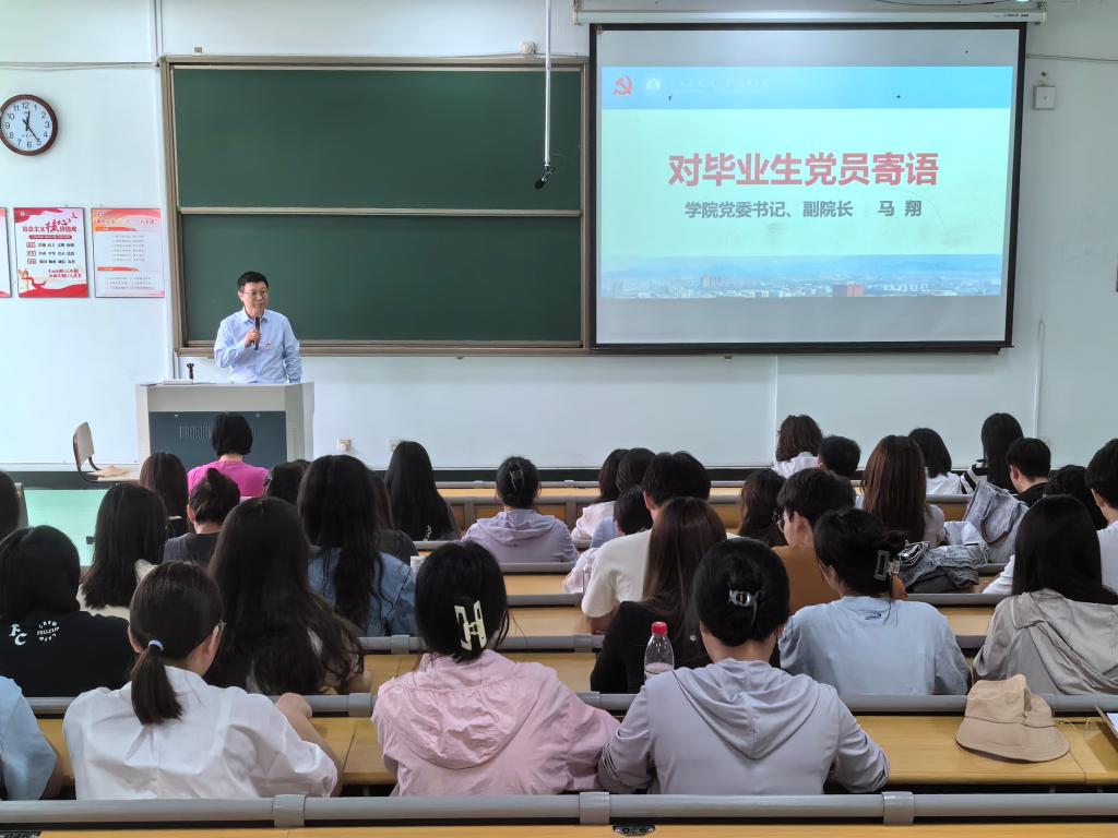 马翔老师首先祝贺毕业生党员以优异的成绩完成学业,感谢党员们一直以来为学院和学校做出的贡献。他对毕业生党员提出了三点希望:希望毕业生党员能够坚守初心,始终保持对党的忠诚和对人民的热爱;能够持续学习,不断提升自我,跟上时代步伐;能够积极服务社会,奉献自己的青春和力量。