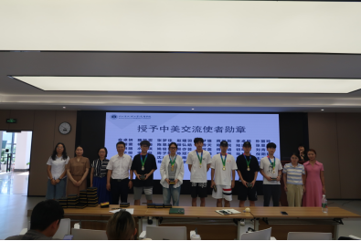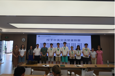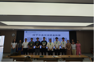 随后,马翔老师、吴琼老师、李雪艳老师以及班导师刘美老师、林雅琴老师为各位同学颁发了交流使者徽章。