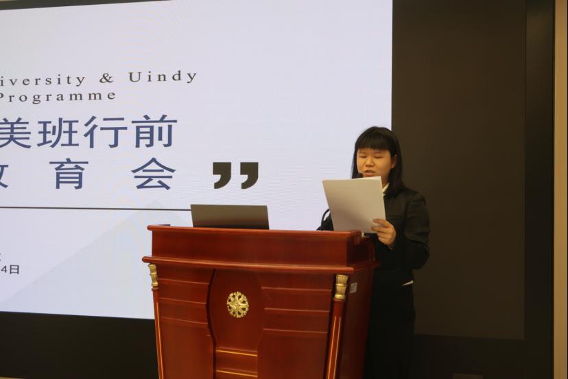 吴琼老师以中美班20年取得的成绩为切入点,表示一路上看到了大家的成长与蜕变:作为中外合作项目学生,一路上既充满挑战,又充满机遇,期待看见大家未来更高的成就。她还对同学们提出了几点期望,一是要做好赴美学习计划,提前做好全英文生活学习环境的转变,为后续尽早适应在美学习打好基础;二是要保障安全,保持集体行动,同学之前要互帮互助,也要紧密和我校老师、美方老师保持联系;三是希望同学们记牢自己理工身份,遵守当地法律法规,做好传播中国文化交流的使者。
