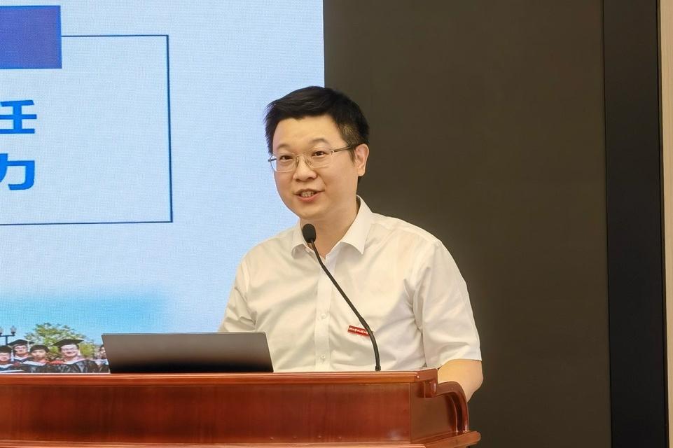 吴琼老师向家长们介绍了新生入校后安排,并建议各位家长放手而不放任,努力做孩子成长路上的陪伴者、倾听者、支持者,引导孩子独立思考、阳光自律,勇于接受困难和挑战,家校协同助力学生成为更好的自己。随后她还做了安全、防诈骗等提醒,并向家长们介绍了班级辅导员、班导师以及班助。最后,她预祝所有中美班新生大学四年都能学有收获,早日达成自己的既定目标。