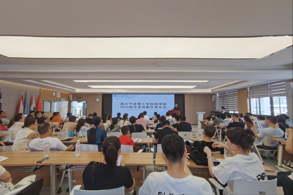 为增加中美班2024级新生家长对中美合作办学项目的了解,进一步提升国际化办学质量,8月24日下午,商学院举行2024级中美班新生家长会。学校国际交流合作处副处长程萌,商学院党委书记、副院长马翔,商学院党委副书记、纪委书记吴琼,商学院副院长李雪艳出席会议,商学院辅导员张楚铭、吴佼老师,班导师谢京华、朱兴婷、余晓立老师以及2024级中美班家长参加会议。会议由学院国际交流中心励呈仪老师主持。