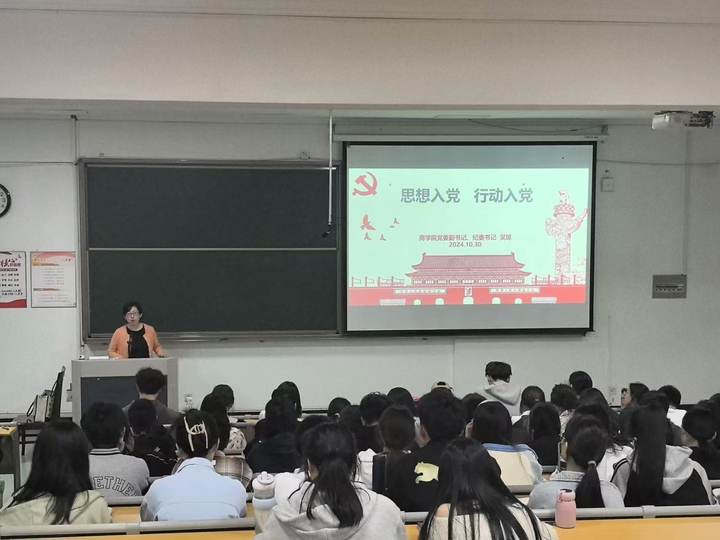 不忘初心使命,端正入党动机。2024年10月30日晚,商学院第四十七期入党积极分子培训班第二讲在SC218开课,本次党课由学院党委副书记、纪委书记吴琼老师担任主讲人。