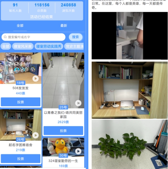 寝室劳动实践秀:评选出一等奖2个、二等奖3个、三等奖4个及杰出奖7个寝室。获奖寝室通过VLOG记录了日常劳动活动,展现了大学生的劳动实践能力和宿舍生活的和谐风貌。