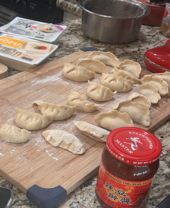同学们还与美国住家一同体验了中国的春节传统美食——饺子。春节是家庭团聚的时刻,而这次同学们邀请了住家一家人一同参与包饺子的过程,向他们介绍了饺子的历史和寓意,讲述了春节吃饺子象征着团圆和好运的传统。大家围坐在厨房中,一起学习如何擀饺子皮、调馅料、包饺子。美国住家的成员对这种手工制作食物的方式感到十分新奇,尝试用不同的手法包出各式各样的饺子,尽管形状各异,但都充满了乐趣和对中国文化的探索精神。