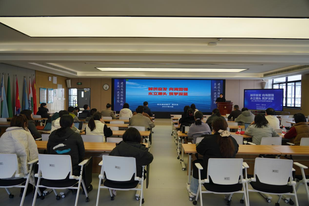 2025年4月1日下午,商学院智库论坛第十七讲如期举行,本次讲座主题为“踔厉奋发 向海图强,永立潮头 筑梦深蓝(海洋经济专题报告)”,主讲人为省交通运输厅原二级巡视员苗永生。浙大宁波理工学院商学院党委书记马翔教授担任本次讲座的主持人,30余位教师参与。本次讲座主要围绕深入学习领会习近平总书记关于海洋强国战略的重要论述、浙江省建设海洋强省与世界一流强港的重大决策、海洋经济和海洋产业的内涵界定与新特征、浙江发展海洋经济的优势和短板、以及加快推进海洋强省建设的目标任务和主要举措等五个方面的内容进行汇报和交流。