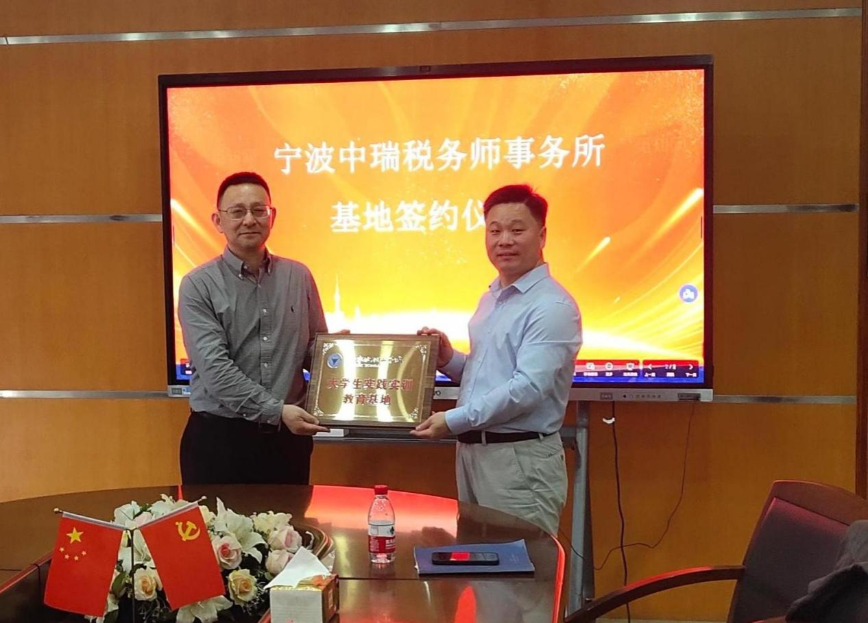 副院长卢红旭对协会一行的到访表示热烈欢迎,并介绍了学院财务管理系的学科发展现状及未来规划。他强调:“深化校协合作是提升应用型人才培养质量的关键路径,共建实践基地、引入行业资源是有效推动财会学科接轨实务的关键抓手。”随后,双方就合作的具体事项达成一致,同中瑞税务师事务所签署了基地合作协议。卢红旭副院长代表学院向中瑞税务师事务所授予“大学生实践实训教育基地”的牌匾,标志着双方合作迈入实质性阶段。