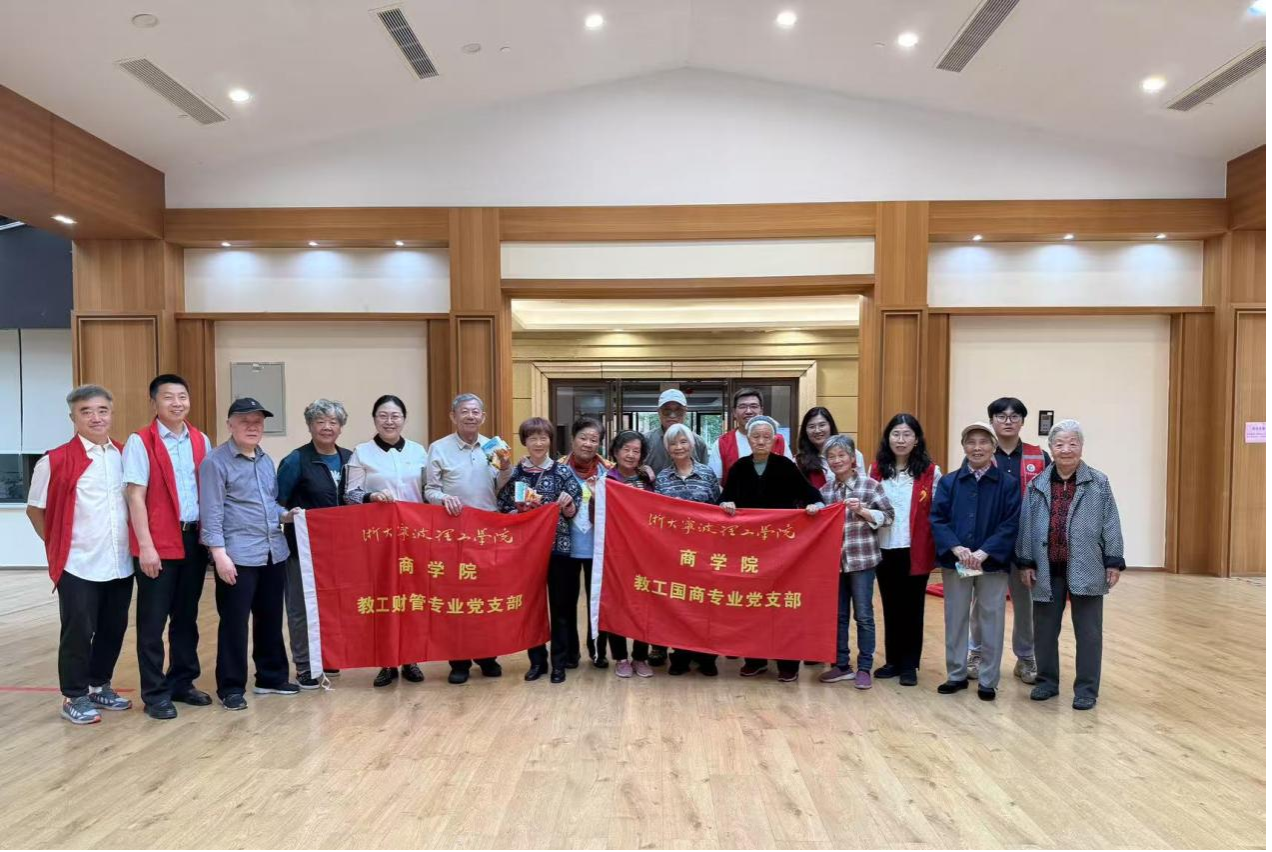 4月22日下午,商学院教工国商专业党支部和教工财管专业党支部受东钱湖南岸社区党支部的邀请,参加为柏庭园区里银龄群体专门举办的春日休闲运动会。
