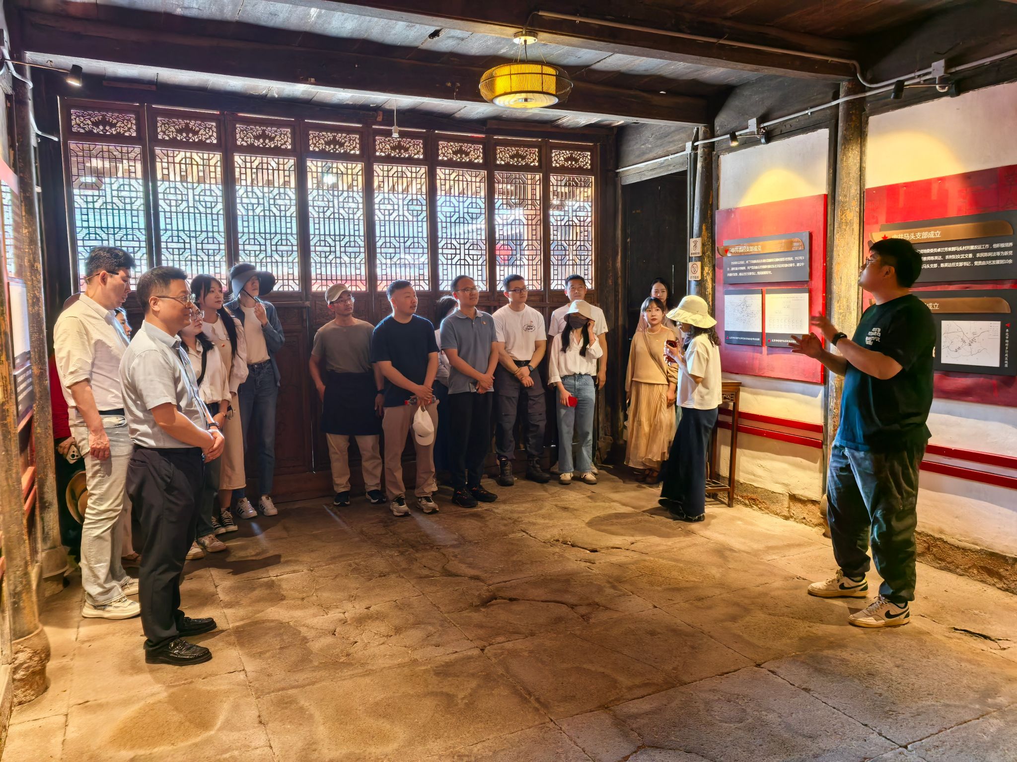 党员们在马头村古建筑群中漫步,感受乡村振兴的生动实践。青石板路蜿蜒串联起保存完好的明清老宅,文创工坊、特色民宿与传统村落和谐相融。讲解员介绍,马头村通过挖掘红色文化、盘活古村资源,走出了一条“党建+文旅”的共富新路,2023年入选为区委宣传区级爱国主义教育基地。党员们边走边看,纷纷为村庄“旧貌换新颜”的成果点赞,感受奋进担当的巨大能量。潘剑邦老师道:“我们要以革命先辈为镜,以乡村振兴为范,把学习成果转化为干事创业的实际行动,在各自岗位上发挥先锋模范作用。”
