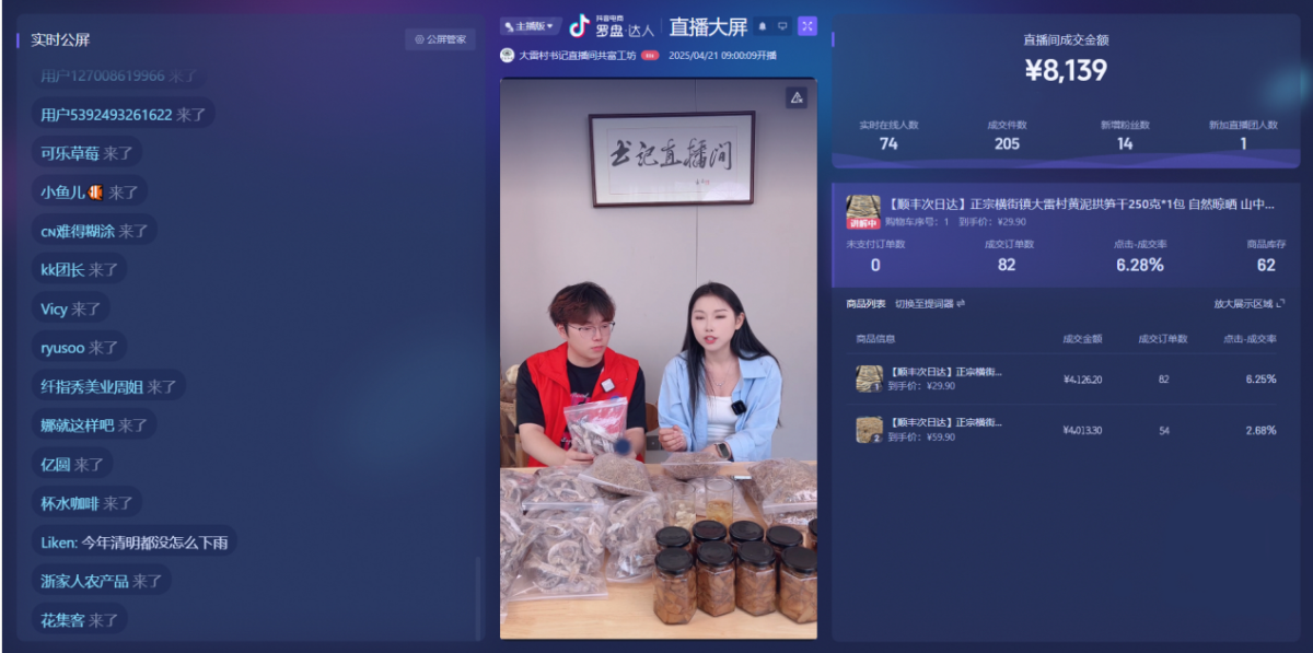 以“书记直播间”和“共富工坊”为核心载体,大学生们用数智赋能乡村经济,将绿水青山转化为金山银山,为乡村振兴注入青春力量。未来,学生团队计划进一步开拓直播内容,打造竹林露营地、生态徒步道等新项目,以实现大雷村“竹文化+农旅融合”的全面升级。