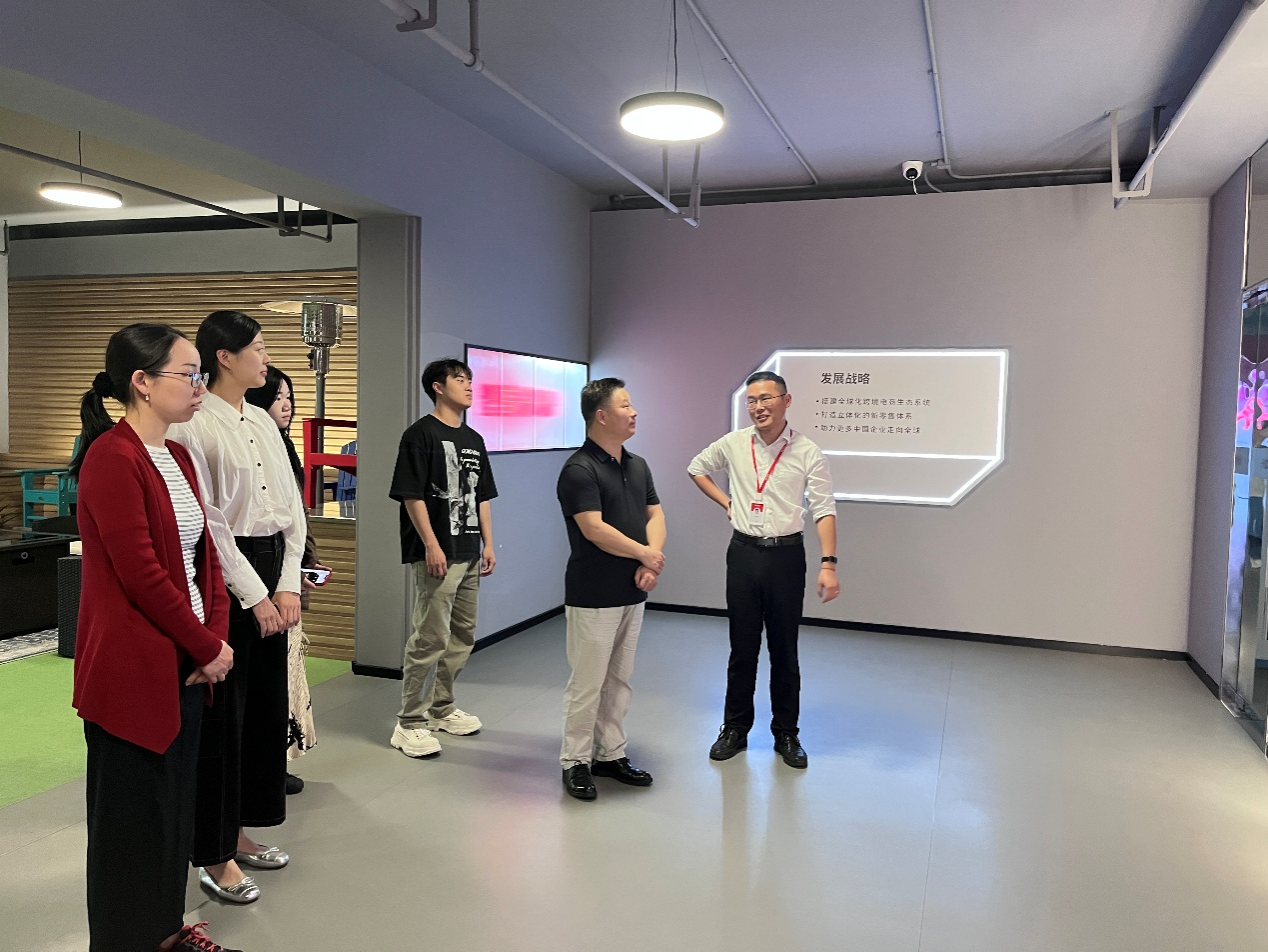首先,刘大伟总监带领师生参观了豪雅集团的展馆,系统介绍了豪雅集团作为宁波大型外贸企业的发展历程、校企合作实践成果,特别强调了集团在跨境电商、国际贸易综合服务等领域对具备国际视野、实践能力的复合型商务人才的迫切需求。于悦介绍了豪雅集团与浙江财经、浙江工商等省内代表性高校的校企合作模式、合作经验,并围绕高校商务人才培养发表了看法和建议,并希望通过与浙大宁波理工学院商学院的深度合作,建立商务人才培养与企业需求的无缝对接机制。