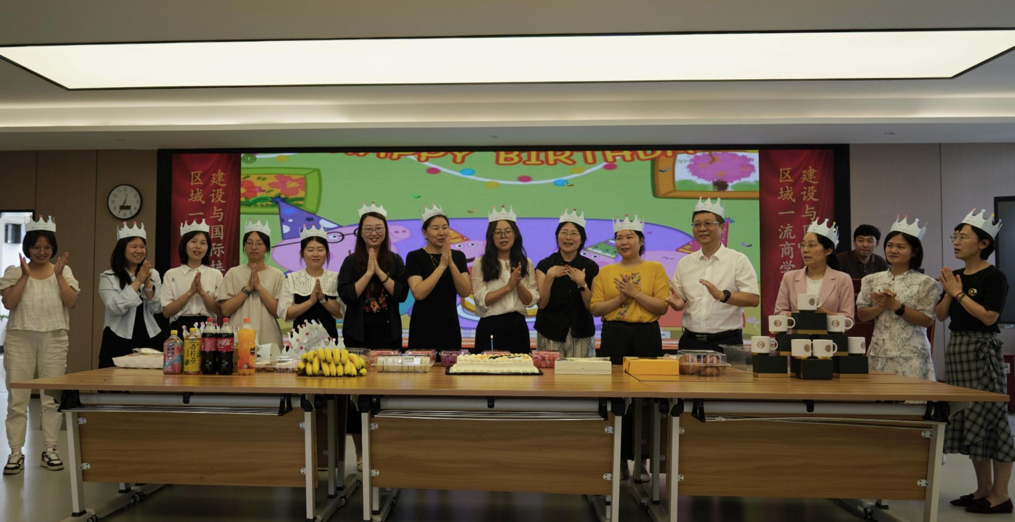 活动最后,学院为上半年过生日的教职工举办了温馨的集体生日会。“寿星”教师们一起欢唱生日歌,并许下美好心愿,随后现场教师们一起分享美味生日蛋糕,畅快交流,现场气氛热烈而温馨。