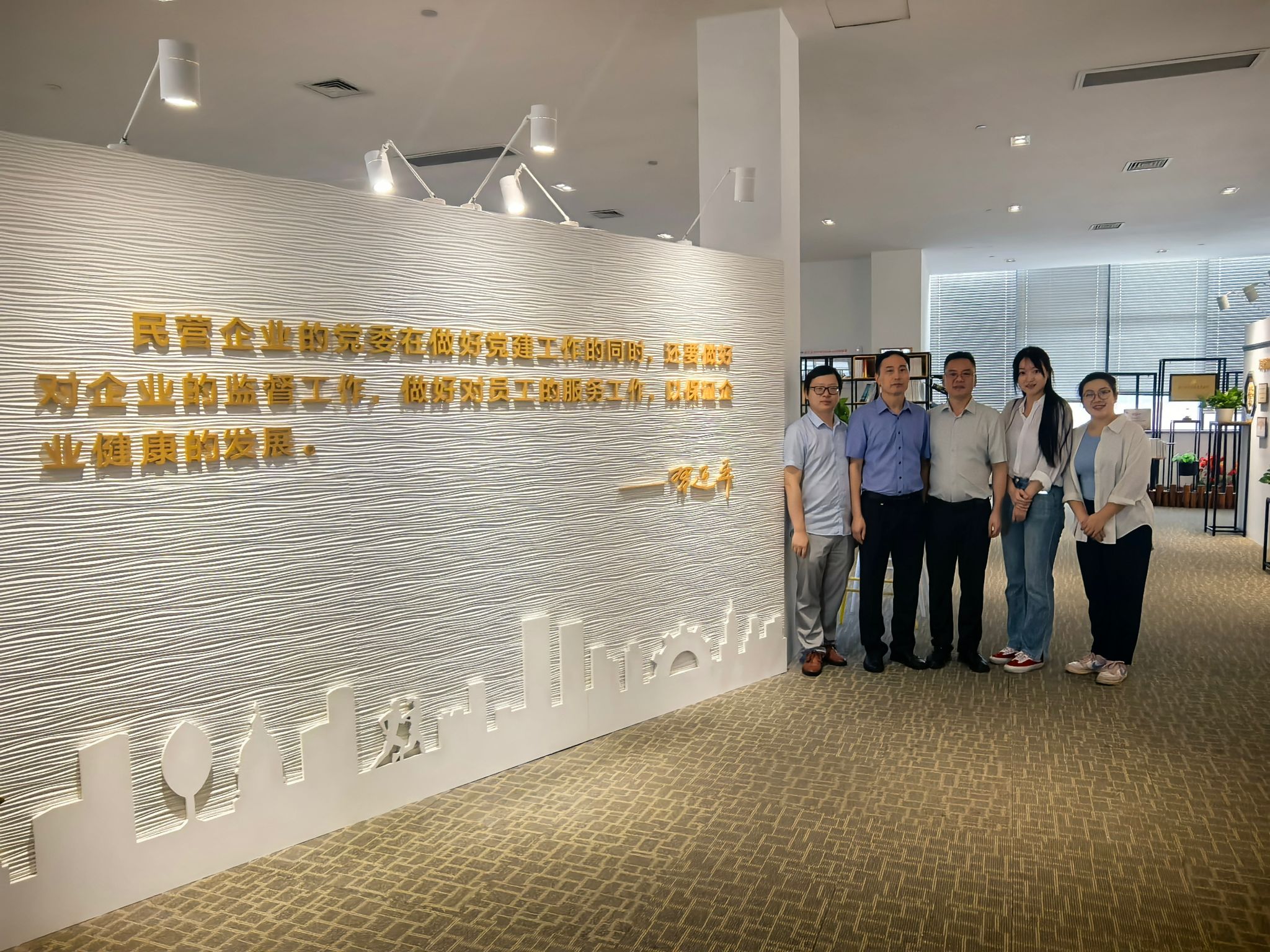 为深入探索数字经济与实体经济融合发展的实践路径,推动高校专业建设与地方产业需求精准对接,2025年6月13日,我院数字经济系教师团队在陈林生教授的带领下,赴浙江茉织华印刷股份有限公司开展专题调研。平湖市委社会工作部副部长张国权、新仓镇党委委员葛琛及企业党支部书记王剑英等共同参与交流,围绕数字化转型、非公企业党建创新、校企协同育人等议题展开深度交流,探索“党建赋能+数字驱动”的产教融合新模式。