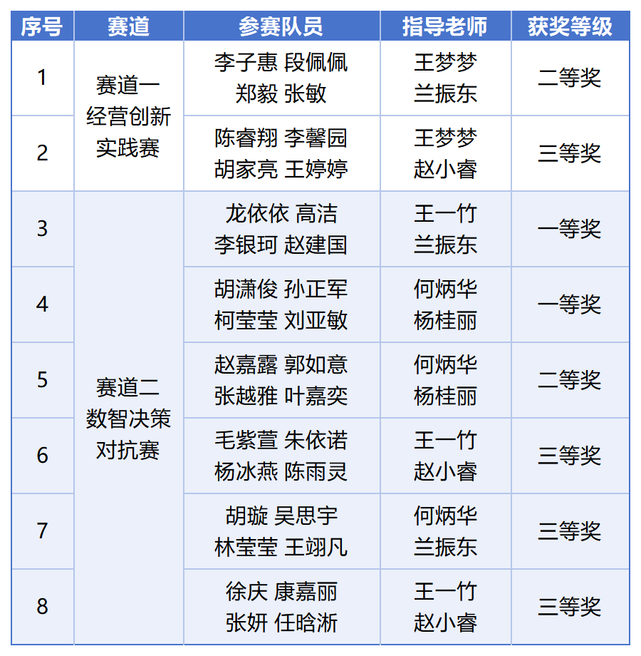 我校商学院选派八支参赛队伍,在本届省赛中表现优异,全部获奖,共斩获一等奖2项、二等奖2项、三等奖4项,获奖数量与质量位居全省前列,充分展现了我校在数智化商科人才培养方面的扎实基础与突出成效。