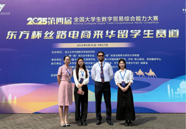 2025年9月以及10月,由浙江大学中国数字贸易研究院主办的全国大学生数字贸易综合能力大赛各赛道赛事圆满收官。我校学子在义乌小商品城AI +创新创业赛、尼奥尼跨境直播赛,“丝路电商”来华留学生创新创业大赛暨东方杯中表现优异,斩获三项国家级奖项,展现了在数字贸易领域的强劲实力与创新风采。
