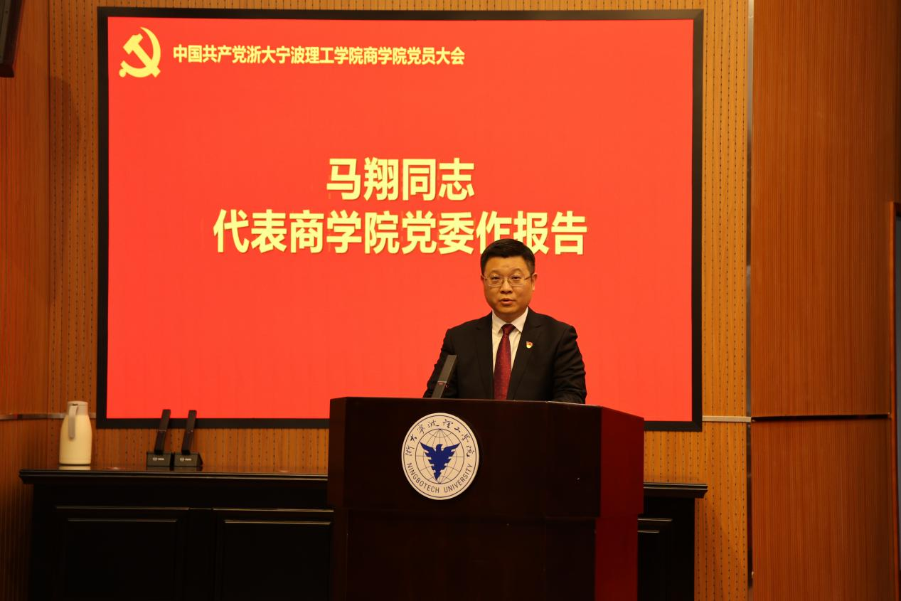 大会听取了马翔同志代表商学院党委所作的工作报告。报告全面回顾了本届党委的工作,总结了学院在党建创优、学科科研、专业建设、人才培养、师资队伍建设等方面取得的成就,分析了学院在发展中存在的困难和问题,并提出了未来发展的思路、任务目标和举措。学院党委在未来五年将继续以习近平新时代中国特色社会主义思想为指导,面对新形势新任务,商学院将以高的格局站位,围绕学校“一校一策”“十五五”规划工作部署,战略擘画学院发展新篇章,全面开启高水平建设新征程。