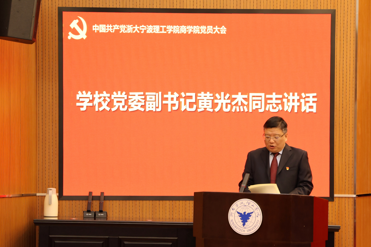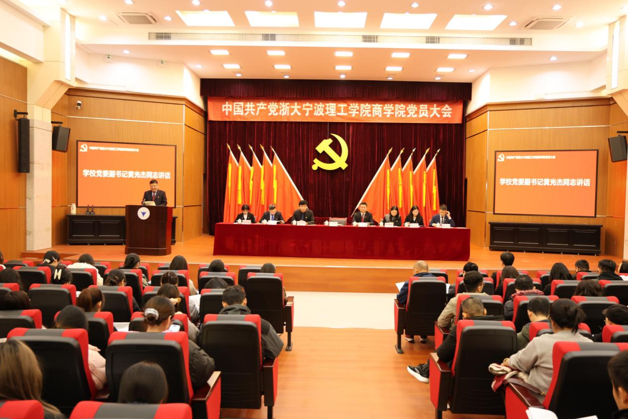 11月20日,中国共产党浙大宁波理工学院商学院党员大会在金宗城法学教学中心举行。学校党委副书记黄光杰出席大会。大会由学院党委副书记赵苏主持,学院全体师生党员参加会议、民主党派教师代表列席了会议。